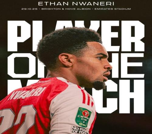 | 在今天凌晨进行的英联杯第四轮比赛中,阿森纳主场2-0击败布莱顿,赛后,恩瓦内里被评为阿森纳队内最佳球员。