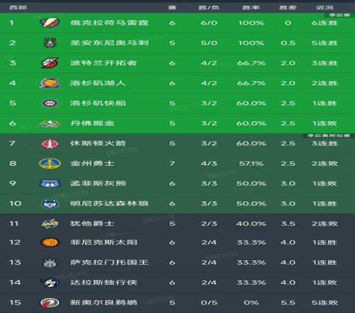NBA最新积分榜:雷刺不败,湖人第4,火箭第7,勇士连败下滑第8