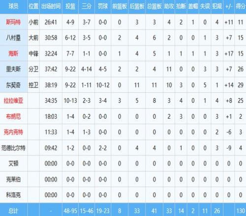 拉拉维亚在湖人三连胜期间,分别轰下27分8板2助1断、13分5板2助3断,以及25分8板3助4断,场均数据为21.7分7板2.3助2.7断,两项命中率78.1%和66.7%,真实命中率高达87.2%。
