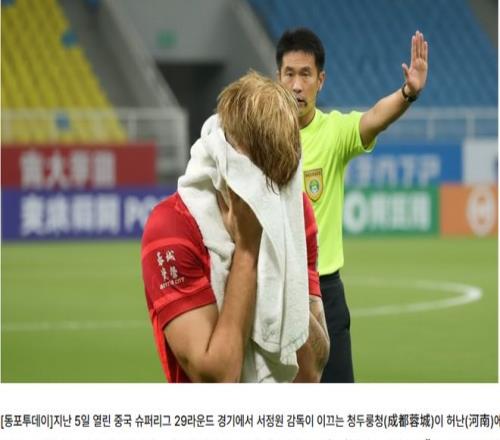韩国媒体《KCN》近日发表专栏文章称:“徐正源和成都蓉城的胜利,被裁判偷走了。在比赛中,当值裁判吹掉了蓉城球员胡荷韬的进球,而且在河南球员阿奇姆彭禁区内手球时也没有判罚点球。这两个误判让成都蓉城丧失了扳平甚至取胜的机会,最终遭遇一场失败。如今,中国足协姗姗来迟地承认错误,但成都蓉城已经因为误判提前退出争冠行列。所以,决定本赛季冠军的是裁判,而不是球员。”