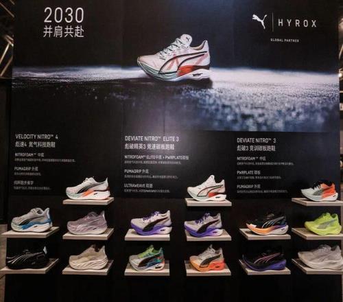 比赛现场,在HYROX WORLD零售区,PUMA的联名运动服饰、相关配件,热门款式和码数几乎售罄。PUMAxHYROX联名的鞋款,如彪速4、彪破精英3在现场销售火爆,也引发了体验热潮。