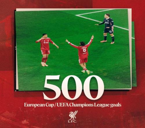 | 欧冠联赛阶段第5轮,利物浦主场对阵埃因霍温,上半场索博斯洛伊破门为利物浦扳平比分,据统计,这是利物浦队史欧冠第500球。