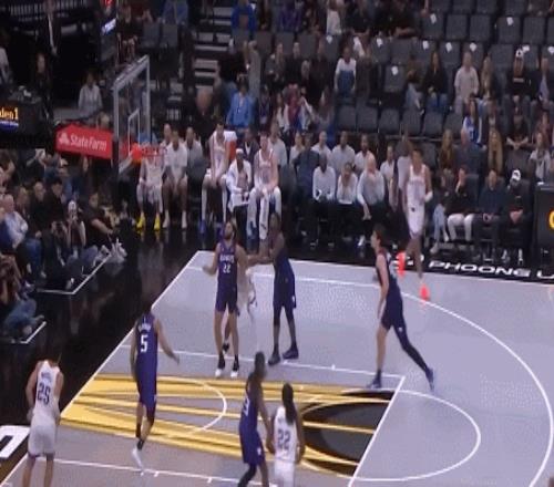 他学会了一些卡鲁索爱玩的防守技巧,也能在和SGA一起上场的时候像杰伦-威廉姆斯一样担任二号持球手,甚至在一些比分胶着的回合里,SGA都会放心地把球交给米切尔来完成进攻。