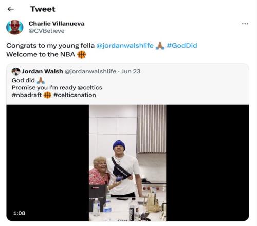 沃尔什被选中时,维拉纽瓦转发推特庆祝 不过说实话,鸡汤归鸡汤,防守悍将的形象实际上也并无法让他在这个高攻低防的大环境下打出来,沃尔什如今能打出来,还是因为自己竭尽所能补上了短板。