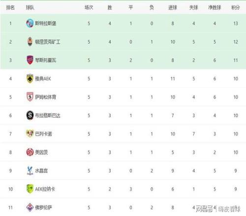5轮过后,来自法甲的斯特拉斯堡有13分,提前一轮锁定前八名的资格,这支被誉为切尔西二队的球队,几周前击败水晶宫,被视为冠军的热门之一。德甲的美因茨排在第8名,末轮跟第5名,积分相同的萨姆松体育相遇,两队也许只能产生一个直通名额。同样有10分,来自西甲的巴列卡诺,末轮面对实力不强的德利塔,只要全取三分必定晋级16强。 当然了,目前高居英超第五名的水晶宫,今年拿下足总杯和社区盾双冠王,新赛季表现出色,被外界认为是欧协联最有可能夺冠的球队。水晶宫暂时排在第9名,末轮只要击败芬兰的库普斯,很有可能直接晋级16强。