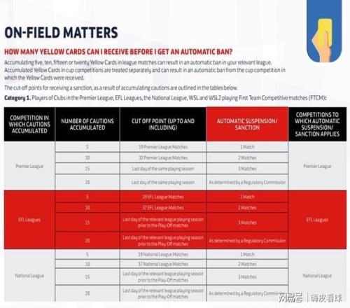 根据英超官网的数据,上轮联赛,曼联中场卡塞米罗领到一张黄牌,已经累积5张,周末缺席阿斯顿维拉的比赛。如果马奎尔和德里赫特无法赶上的话,加上非洲杯离开的三人,半数主力都不能出场,曼联将面对极大的考验。 那么,累积黄牌停赛的规则是怎样的呢?